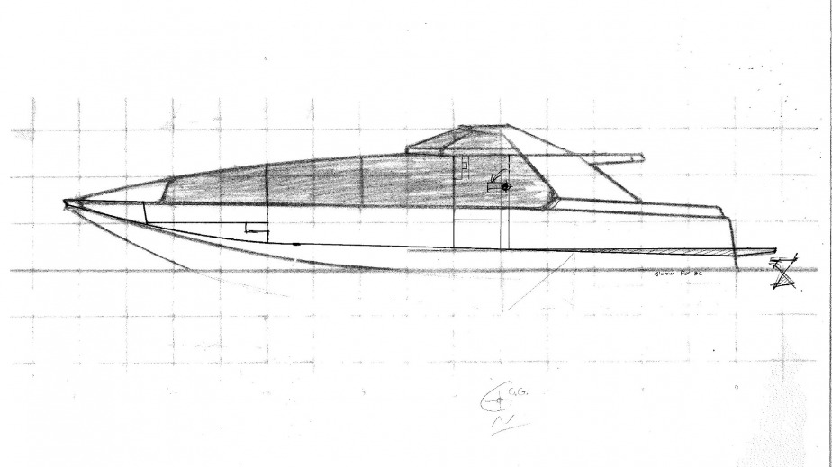 En février 1996 je trouve la première silhouette (design) de ce que je nomme alors projet JET 16. Dans la foulée j'élabore les plans de forme d'aménagements et de motorisation, j'ajuste le devis de poids pour des moteurs Cummins 450c couplés à des hydro jet HAMILTON. D'où vient l'appellation JET 16.